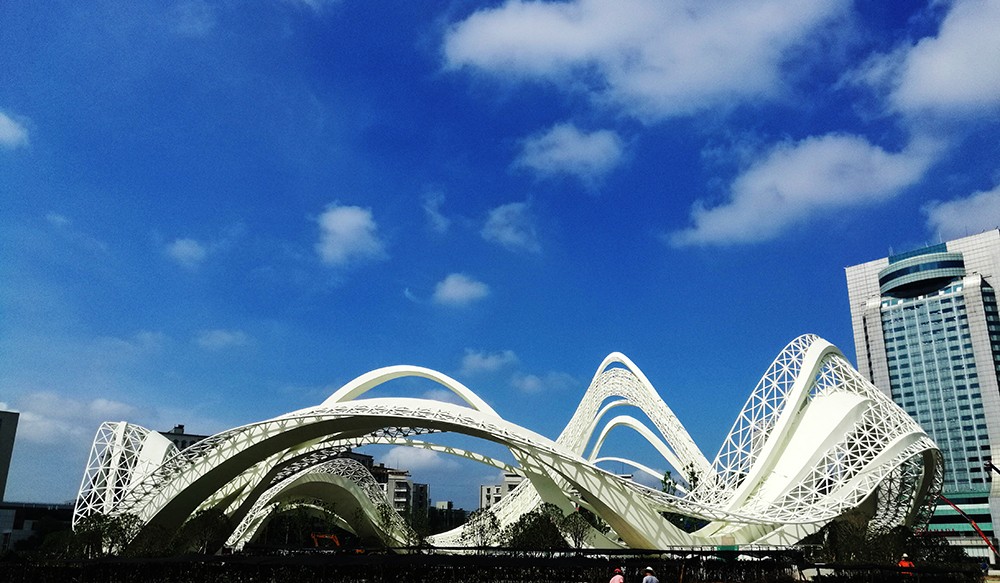 《星河》高40m 直徑90m 不銹鋼 鋼結構 設計:北京央美城市公共藝術院 2019年 位于武漢光谷廣場